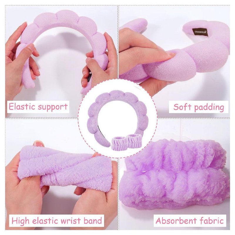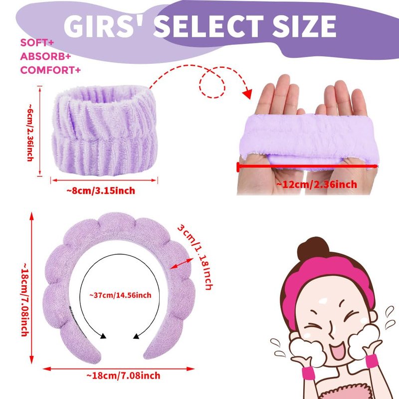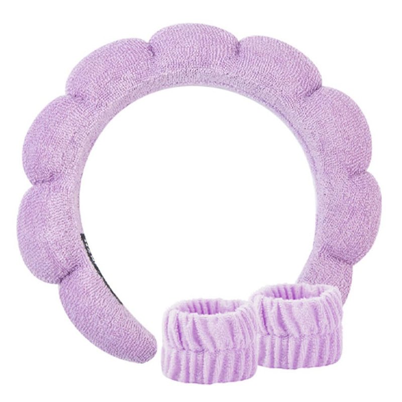 - 【Skincare headband】Terry cloth headbands for women is very soft and comfortable, helps keep hair out of your face. The skin care headband is also a gift choice for your friends, family .Package included:Spa headband×1,Wristband×2. Color:Purple.