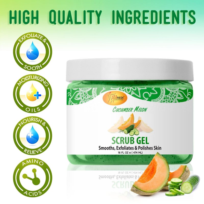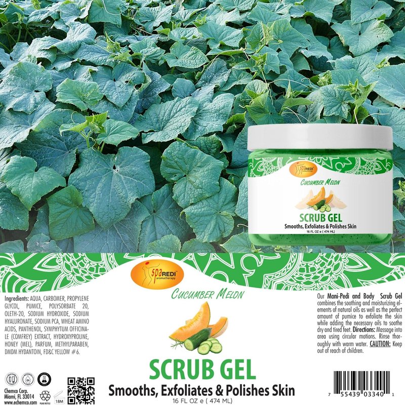 SPA REDI – Exfoliating Scrub Pumice Gel, Cucumber Melon, 16 oz - Manicure, Pedicure and Body Exfoliator Infused with Hyaluronic Acid, Amino Acids, Panthenol and Comfrey Extract