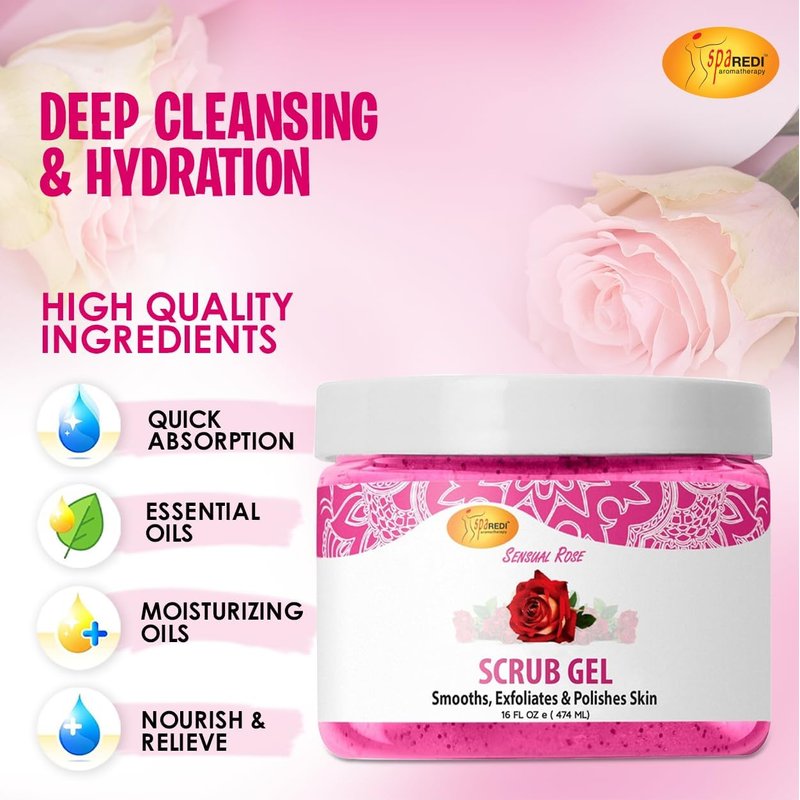 SPA REDI – Exfoliating Scrub Pumice Gel, Sensual Rose, 16 oz - Manicure, Pedicure and Body Exfoliator Infused with Hyaluronic Acid, Amino Acids, Panthenol and Comfrey Extract