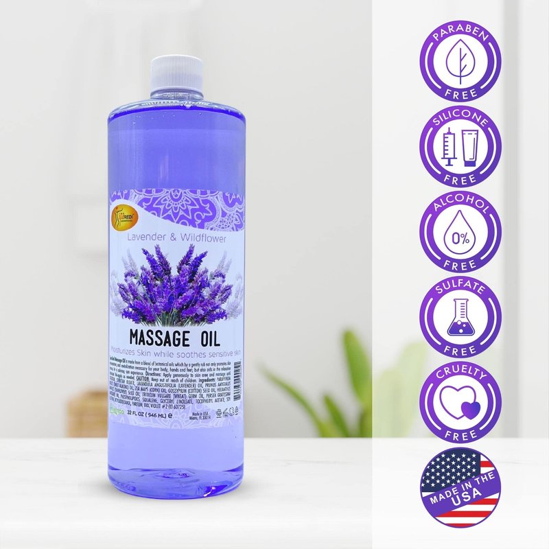 SPA REDI - Massage Oil, Lavender, 32 Oz - Professional Full Body Massage Therapy, Manicure, Pedicure - Relax Sore Muscles and Repair Dry Skin, Enhanced with High Absorption Oils and Vitamin E