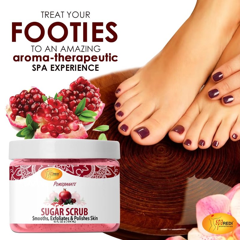 SPA REDI – Sugar Body Scrub, Pomegranate, 16 Oz, Exfoliating, Moisturizing, Hydrating and Nourishing, Glow, Polish, Smooth and Fresh Skin - Body Exfoliator