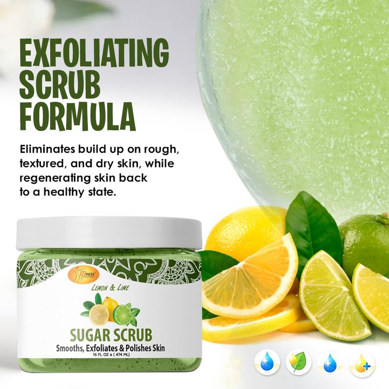 SPA REDI Sugar Scrub Lemon and Lime - Moisturizing and Exfoliating Body Scrub, Face, Hand, Foot Scrub body exfoliator for Nourishing, Glow, Polish, Smooth and Fresh Skin 16 Oz