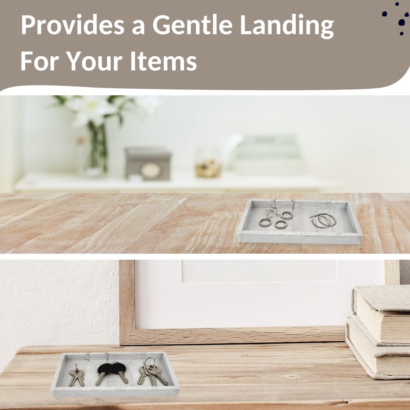 - Thoughtfully Sized – The dimensions, combined with the gentle texture, make this small tray perfect as a dish soap tray or hand soap tray- it’s ideal for a set of soap and lotion bottles, or as a ring tray, key tray, trinket tray, or bathroom sink vanity tray.