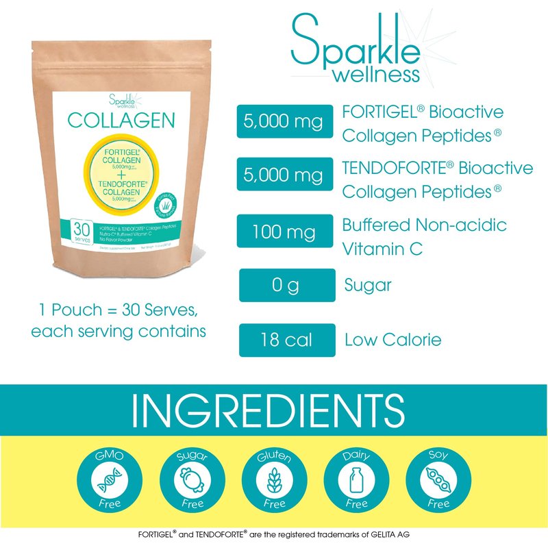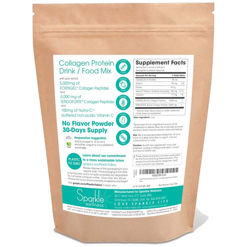 Sparkle Joint Boost (No Flavor) [30-Serves] FORTIGEL & TENDOFORTE Non-GMO Collagen Peptides Protein & Calcium Ascorbate Vitamin C Supplement, Research Based Nutrition for Cartilage ligaments tendons