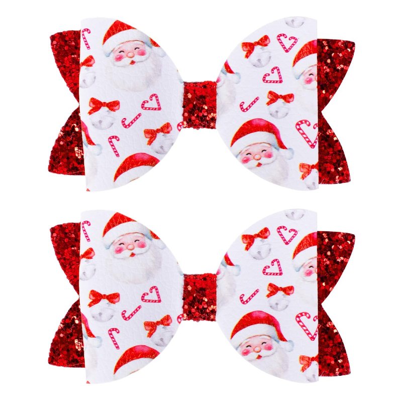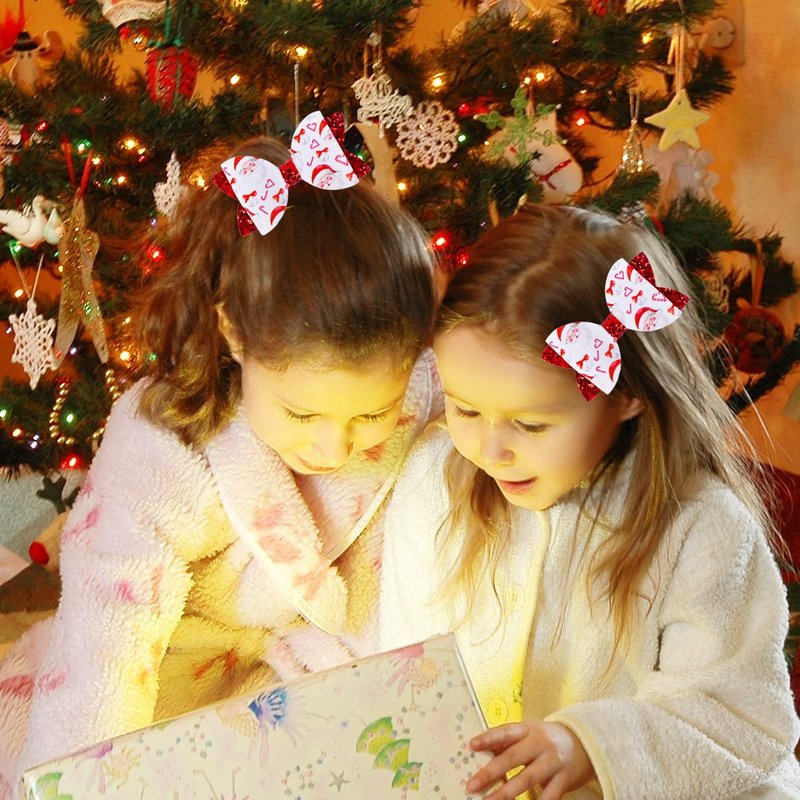 - 🎅Premium Quality Materials: Crafted from PU leather and glitter in a double-layer bow design, these sparkly hair clips are lightweight and comfortable, ensuring a secure, gentle fit for girls.