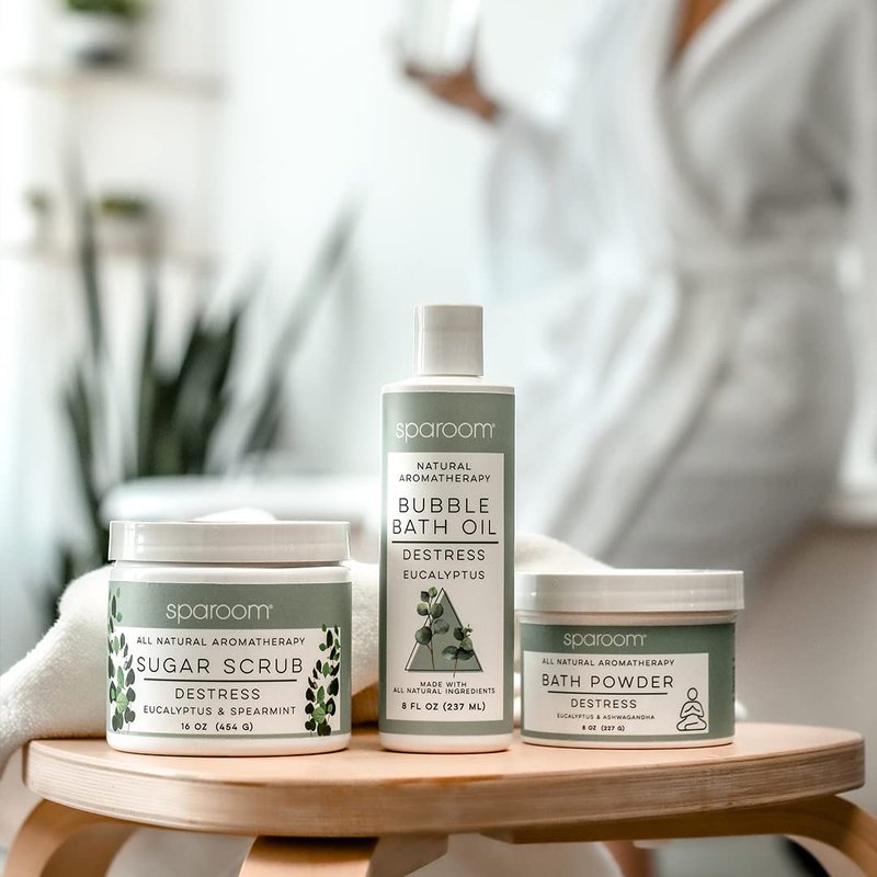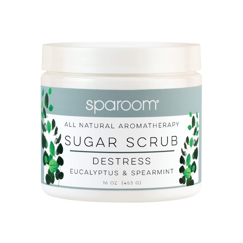 SpaRoom All Natural Aromatherapy Shea Butter and Raw Sugar Hydrating and Exfoliating Body Scrub, 16 oz, Destress- Eucalyptus and Spearmint Essential Oils