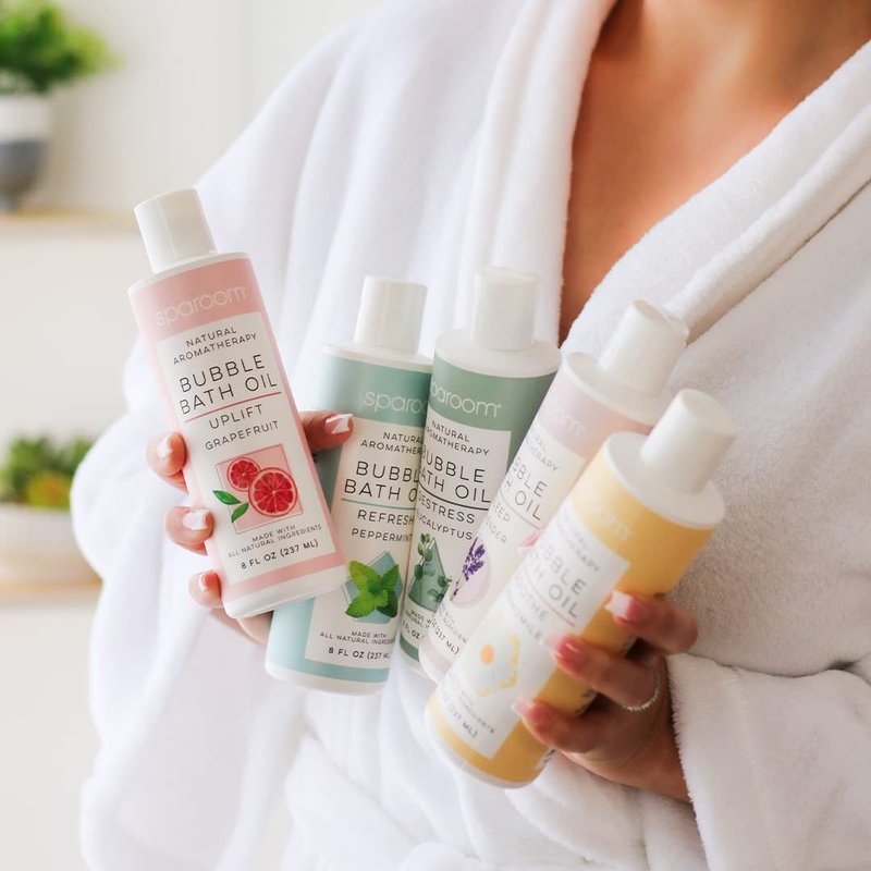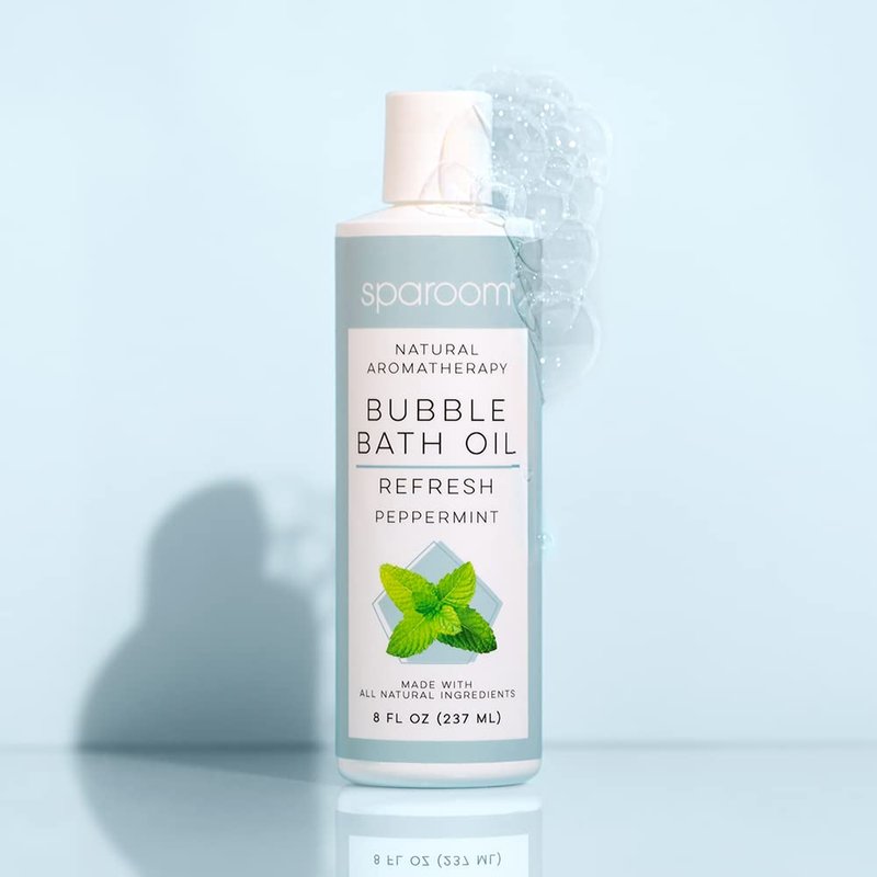 SpaRoom All Natural Hydrating and Nourishing Aromatherapy Foaming Bubble Bath Oil with Jojoba Oil, Olive Oils and Aloe, 8 oz, Refresh-Peppermint