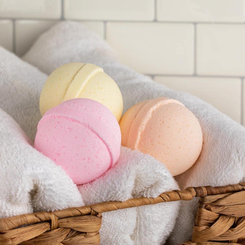 - NATURAL INGREDIENTS: Each handcrafted bath bomb measures 2.25-inches in diameter and is made with natural ingredients to help soothe sore muscles and rejuvenate the body and mind. Pack includes each of the following scents: Orange, Lemongrass and Grapefruit.