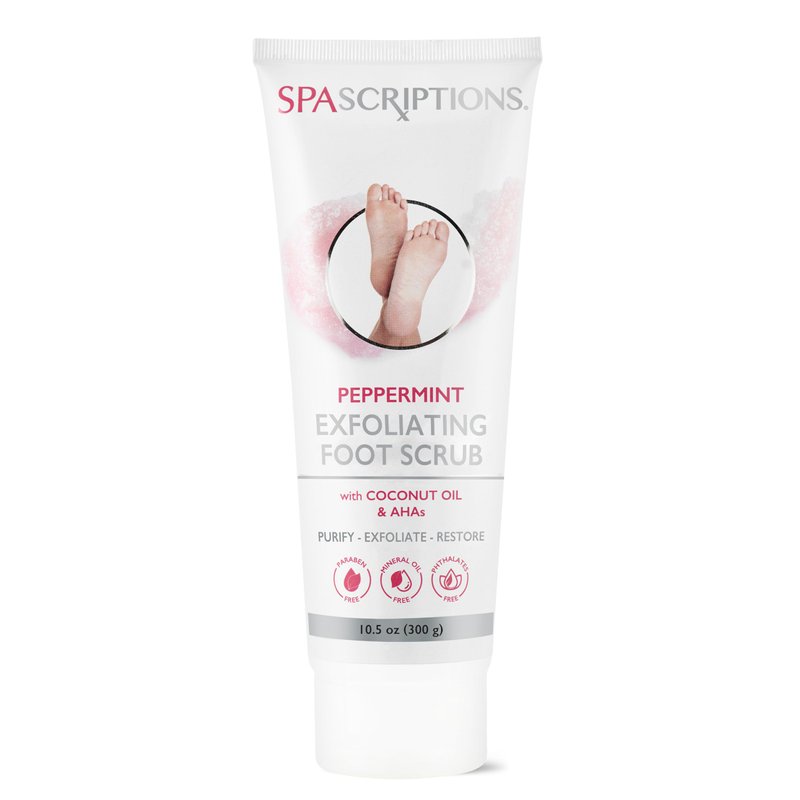 SpaScriptions Peppermint Exfoliating Foot Scrub with Peppermint, Coconut Oil, Alpha Hydroxy Acids (AHAs), Exfoliates and Renews Dry, Cracked Feet and Heels, Dead Skin and Callus Remover (10.5 oz)