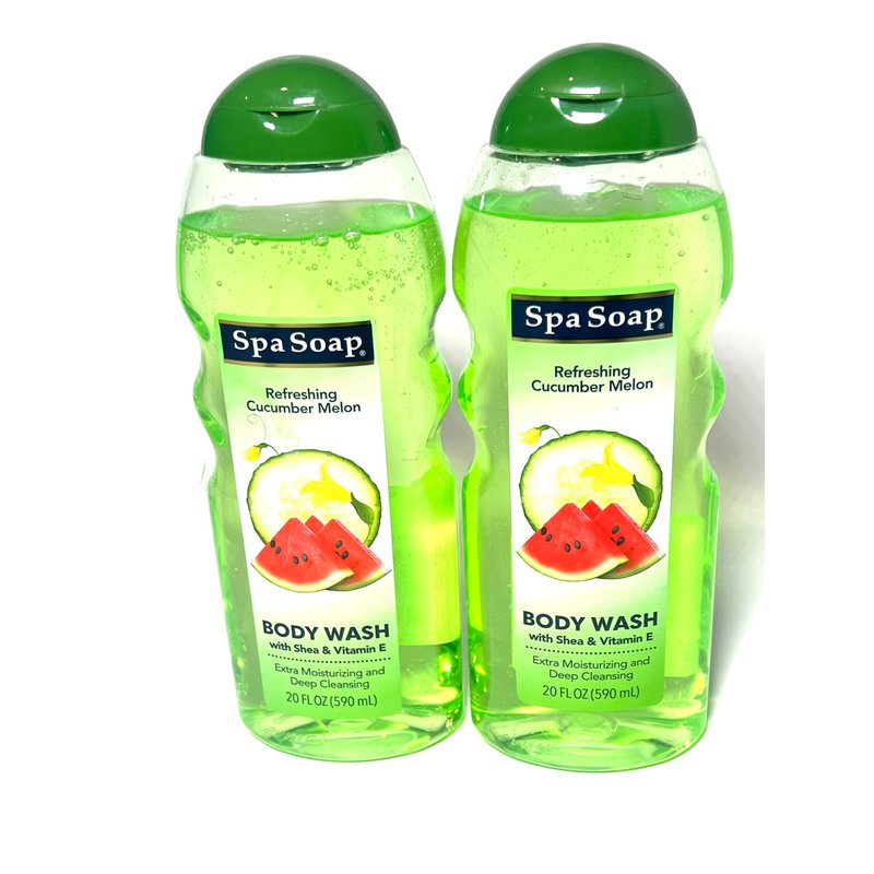 Spasoap Body Wash, With Soft Refreshing Scent Extra Moisturizing and Deep Cleansing with shea & Vitamin E (2 count) 20FL oz each; Body soap smooth feeling (Cucumber Melon)