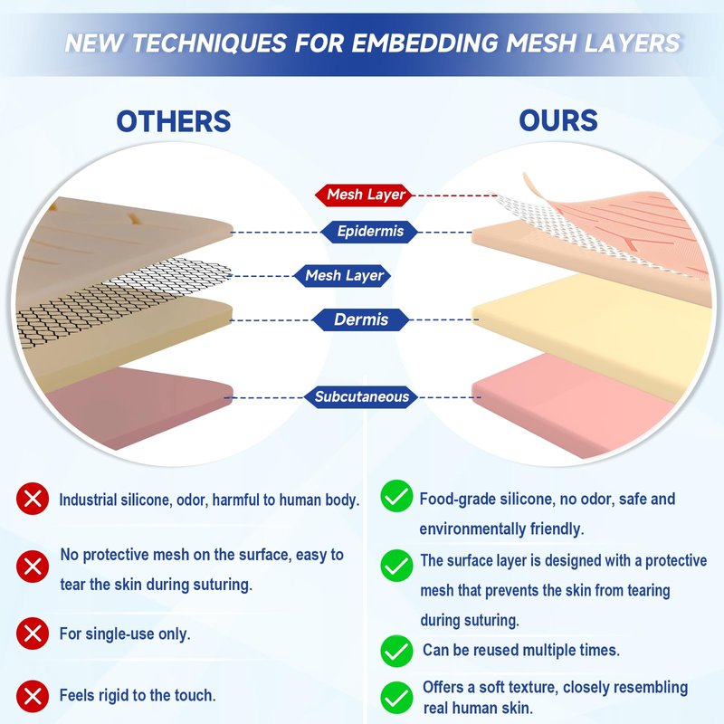 - Realistic Skin Pad: Our pad accurately mimics the 3-layer structure of real skin, fat, and muscle with lifelike textures, allowing for effective stitching and cutting practice suturas quirurgicas.