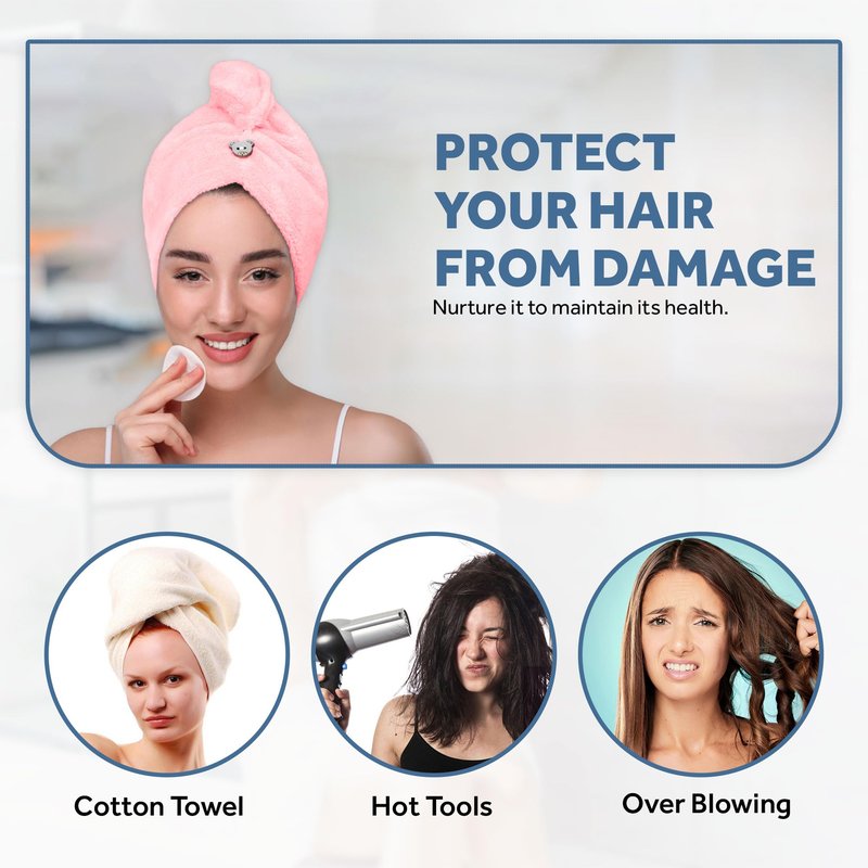 - No more rough microfiber hair towels that can damage your hair cuticles! Our hair towels for long hair provide gentle and effective drying action which helps in maintaining the smoothness of your hair. The plush fabric of hair drying towels is gentle on your strands, preventing breakage and maintaining your hair's natural texture and shine. Whether you have straight, curly, or textured hair, our towel hair wrap provides care and attention to all hair types.
