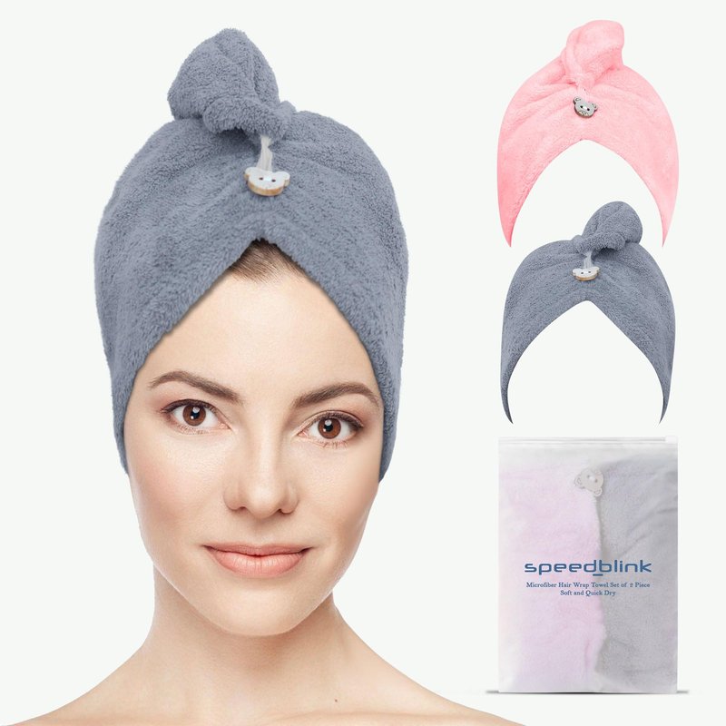 SPEEDBLINK Women Microfiber Hair Towel Wrap | 10 x 25 inch Hair Wrap Towels for Straight, Curly & Long Hairs | 2 Pack Soft & Absorbent Hair Turban Towel (Pink & Grey)