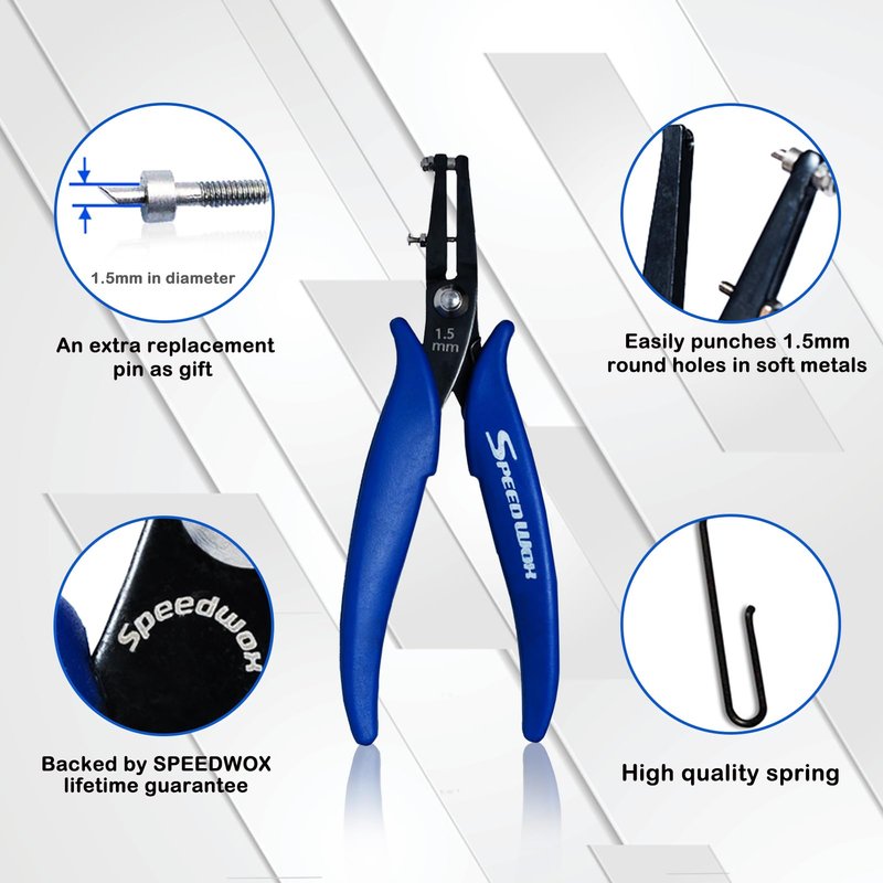 SPEEDWOX Metal Hole Punch Pliers for Jewelry 1.5mm Diameter Round Hole Sheet Metal 24 Gauge Thick 6 Inches Precision Fine Pliers Jewelry Making Tool Craft Beading Hobby Labor Day Gifts