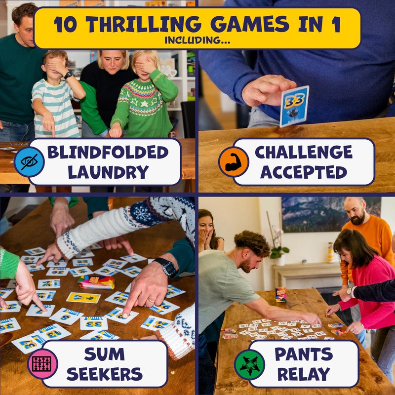 - 10 GAMES IN 1 - Ten thrilling and varied ways to play including "Blindfolded Laundry", "Under Where?" and "Challenge Accepted"