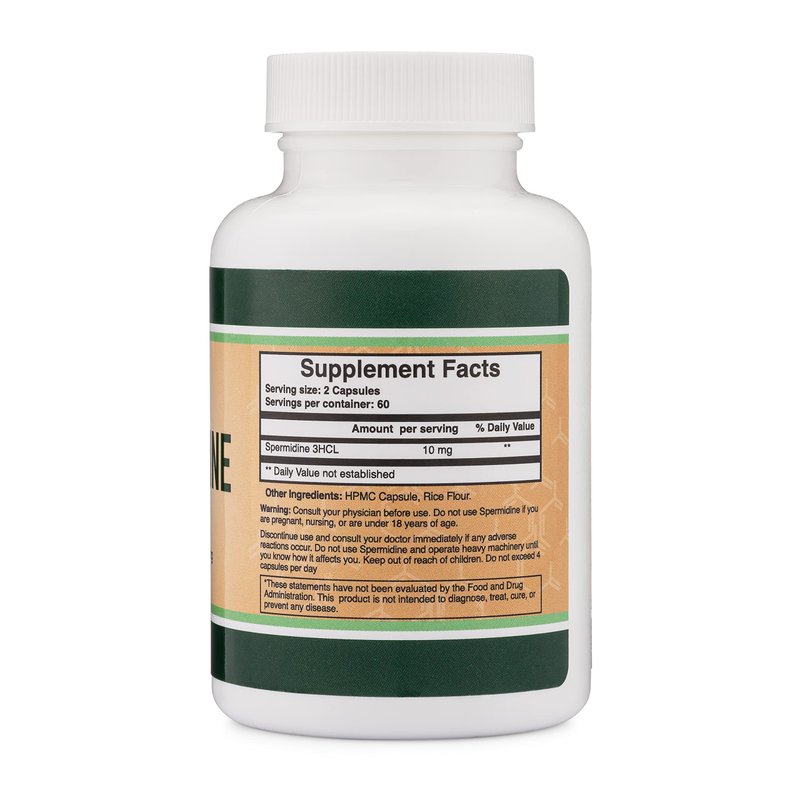Spermidine Supplement (10mg of 99% Spermidine 3HCL - Third Party Tested) 120 Capsules - Over 100x More Potent Than Wheat Germ Extract for Cell Membrane, Telomere Health and Aging by Double Wood