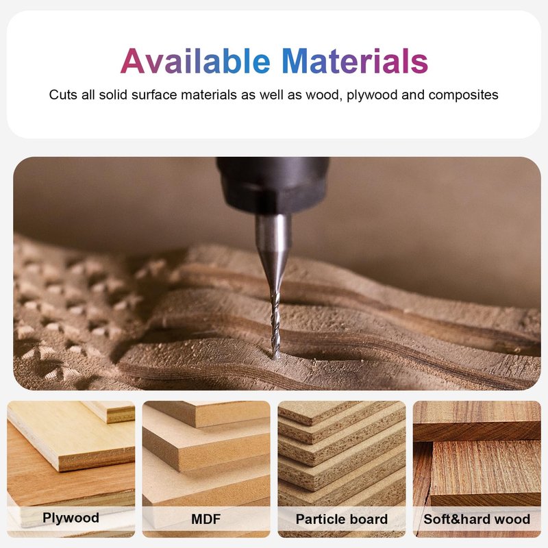 - COMPATIBILITY. This CNC Router Bits is perfect for soft woods, hard woods, Plywood, laminate, OAK, MDF and any hardwood working. It can be used with cnc router and handheld router with 1/4" collet.