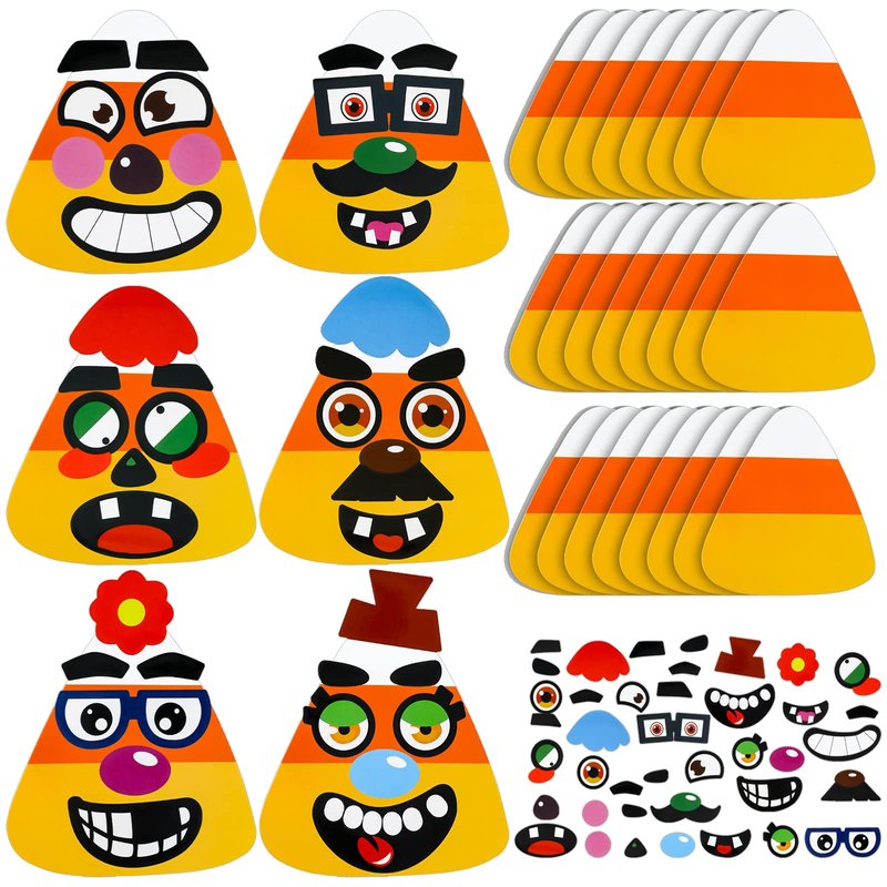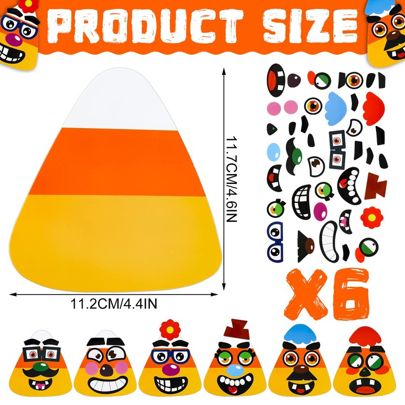 - Package Includes: you will get 30 sets of Halloween candy corn ornament crafts in 6 adorable styles, 5 sets per style, including about 112 x 130 cm/ 44 x 51 inch card cutouts and matching stickers for kids to enjoy DIY, and you can also use rope to hang the finished crafts and decorate them to your home for better effect