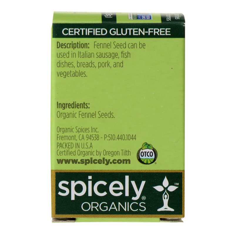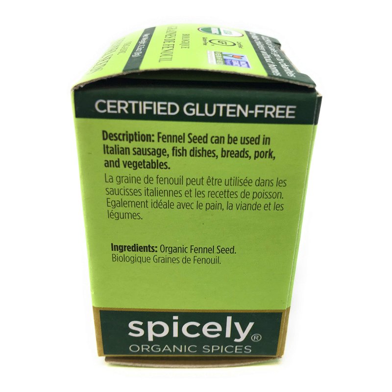 Spicely Organic Fennel Seeds 0.3 Oz Certified Gluten Free