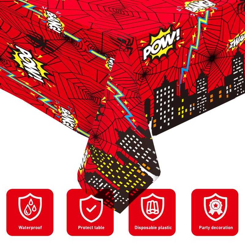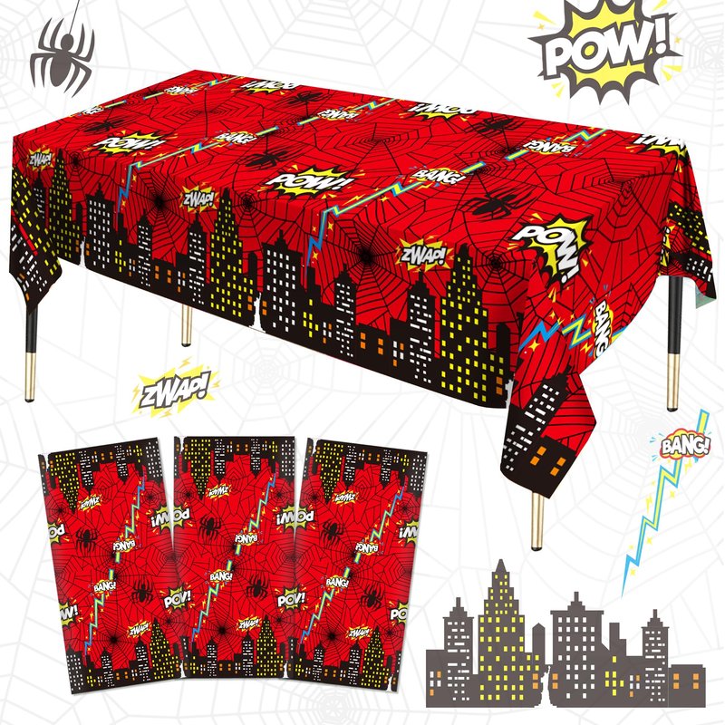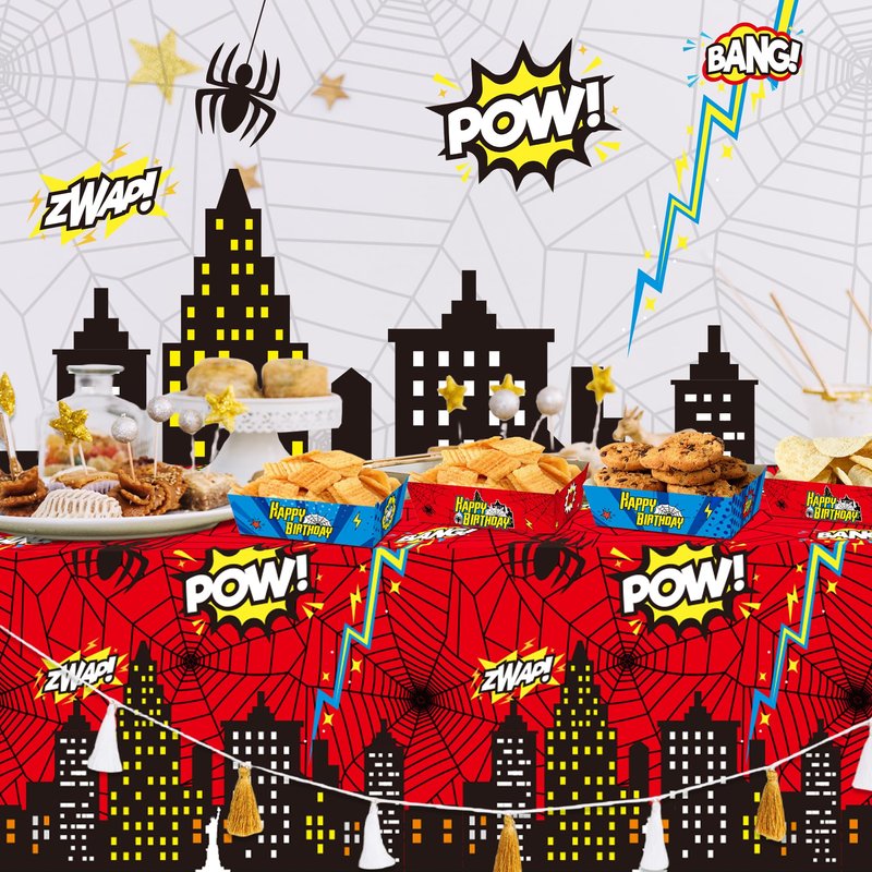 - Unique Design: These superhero spider party tablecloths are designed with the handsome spider, many-storied buildings, spider web, creating a cheerful and exciting atmosphere.
