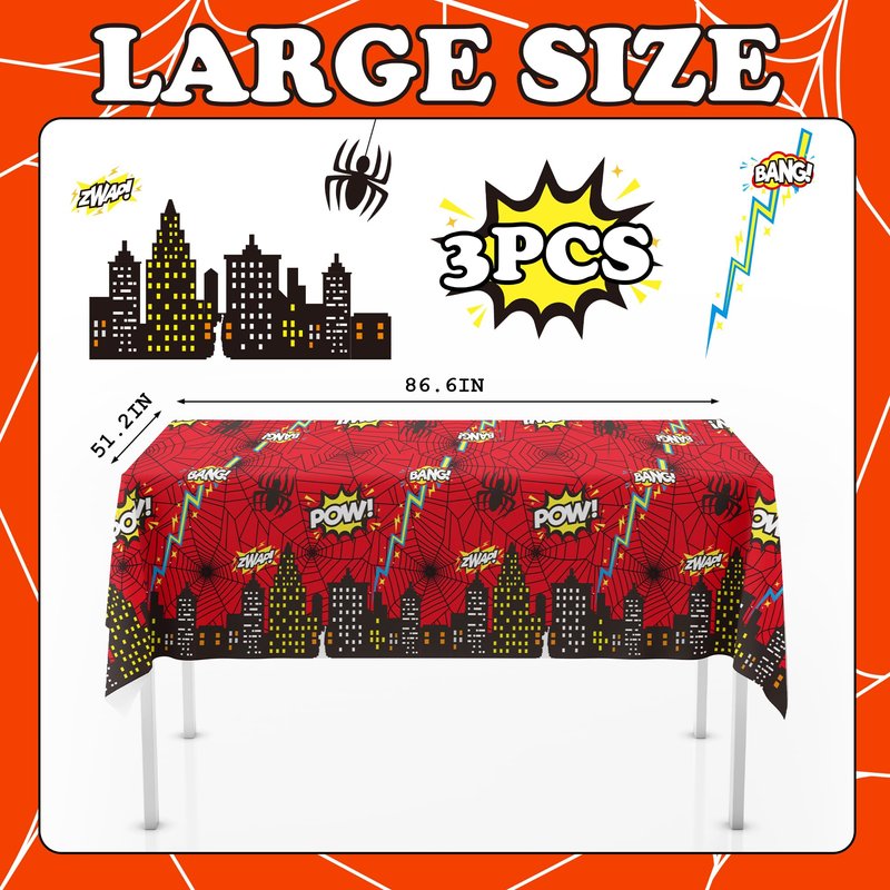 Spider Theme Party Tablecloth 3 PCS, Plastic Disposable Superhero Spider Table Cover for Spider Fans Birthday Party Decorations Supplies, 86.6 x 51.2in