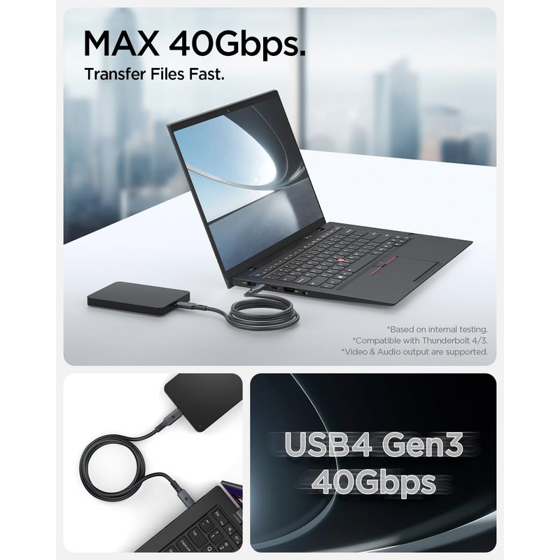 - What You Get: Spigen ArcWire USB-C to USB-C Cable (6.6ft/2m,EPR 240W,USB4 Gen3 40Gbps), Reusable Cable Tie, User Manual