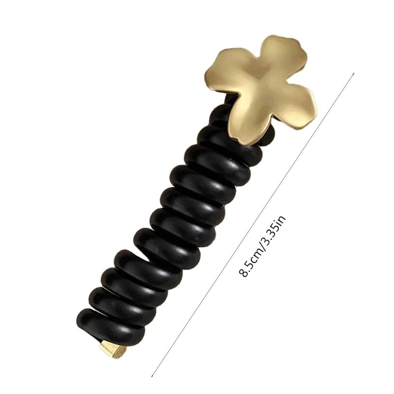 Spiral Rip Telephone Cord Hair Ties, Gold and Black Elastic Coil Phone Cord Ponytail Holders Telephone Wire Rubber Scrunchies Hair Bands(5pcs)