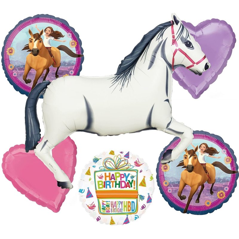 - (1) 43" White Horse Foil Balloon, (2) 17" Spirit Riding Free Foil Balloons, (2) 18" Heart Foil Balloons 1- Pink, 1-Lilac and (1) 18" Mayflower Products Happy Birthday Present Foil Balloon. Ribbon Not Included. All Anagram Licensed Balloons are Made in USA. Founded in 1977, Anagram International leads the world in innovating and manufacturing foil balloons.