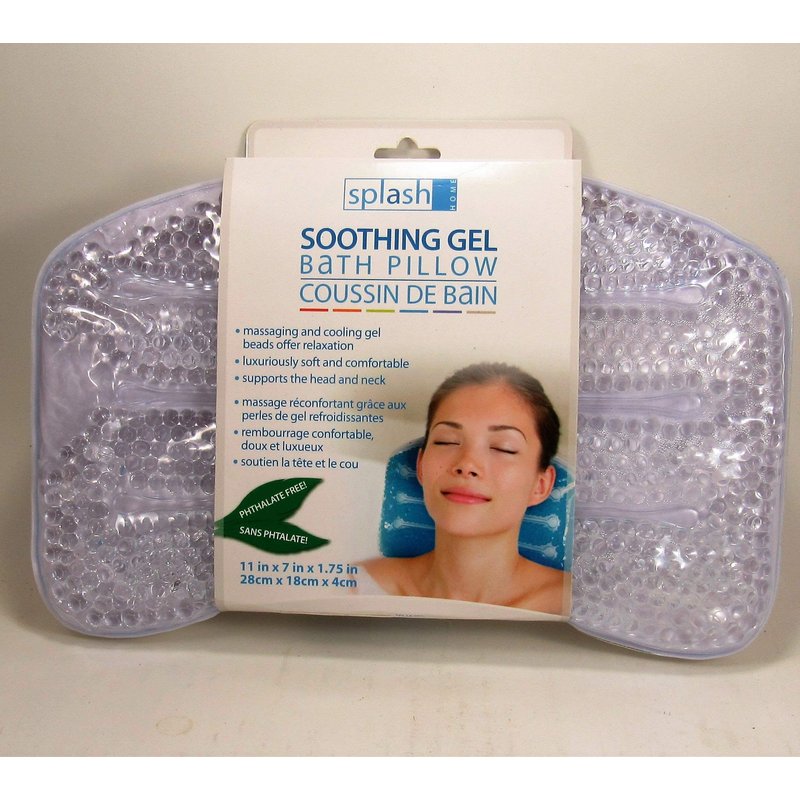 Splash Home Gel-B Non Slip Bath Pillow Luxurious Cushion Spa for Bathtub, Hot Tub, Jacuzzi, with 2 Strong Suction Cups, Supports Neck & Shoulders, 11 x 2 x 7, Clear