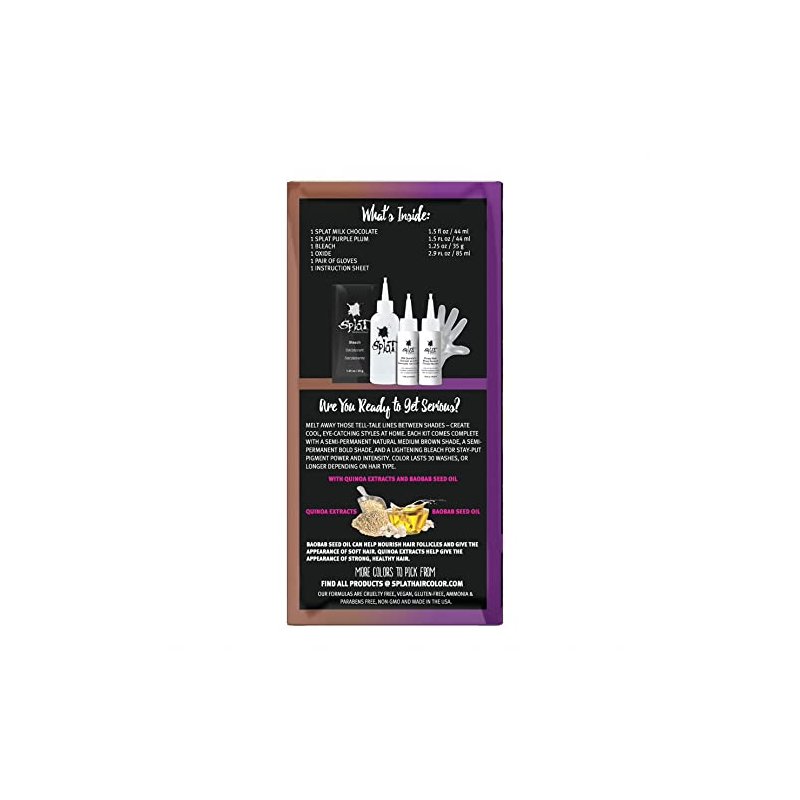 SPLAT MELTS COMPLETE KIT WITH BLEACH AND 2 SEMI-PERMANENT HAIR COLORS (Purple Plum & Milk Chocolate)