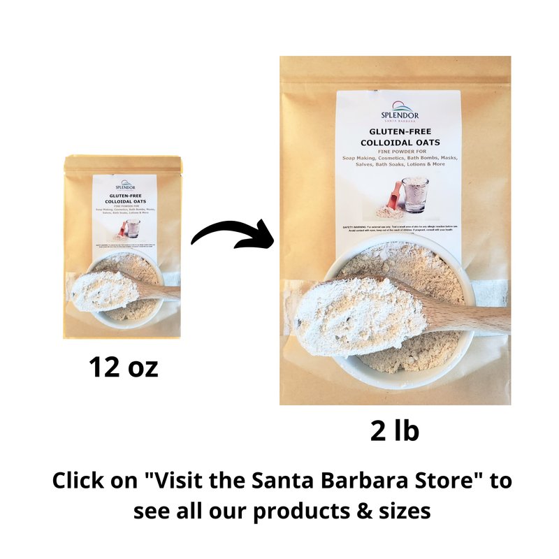 Gluten-free Colloidal Oatmeal Powder can be incorporated as a healing ingredient for soap making, soap supplies oatmeal for bath, bath bombs, masks, pet shampoo salve and more. Amazingly gentle cleansing, natural moisturizing, and relief of skin irritation for sensitive, dry or itchy skin. Created by grinding kilned groats while retaining the bran layers fully intact. Gluten-free colloidal oat is an excellent whole grain source for use in many beauty, skin care applications.