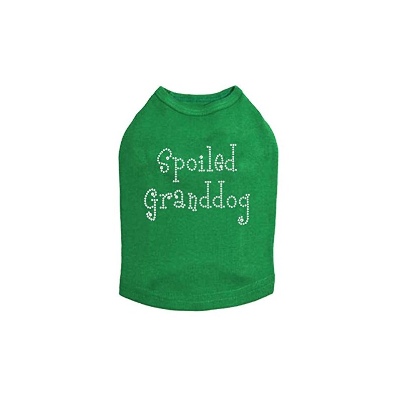 Spoiled Granddog rhinestone dog tank for large and small dogs. 4" X 3" design with clear rhinestones. Matching rhinestone t-shirts for pet owners.