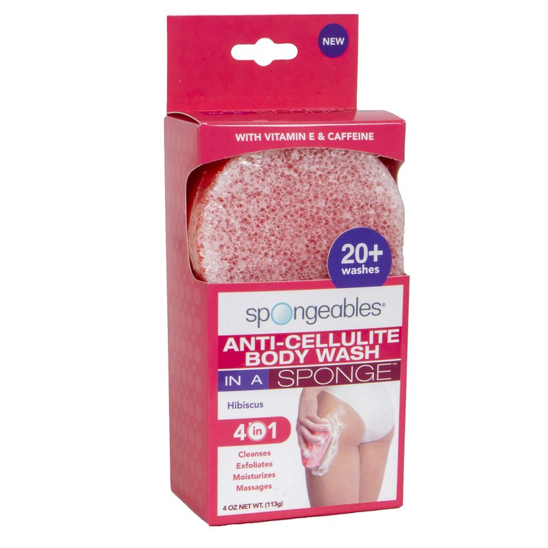Spongeables Anti-Cellulite Body Wash in a Sponge, Reduce The appearance of Cellulite, Moisturizer and Exfoliator for The Body, 20+ Washes, Hibiscus