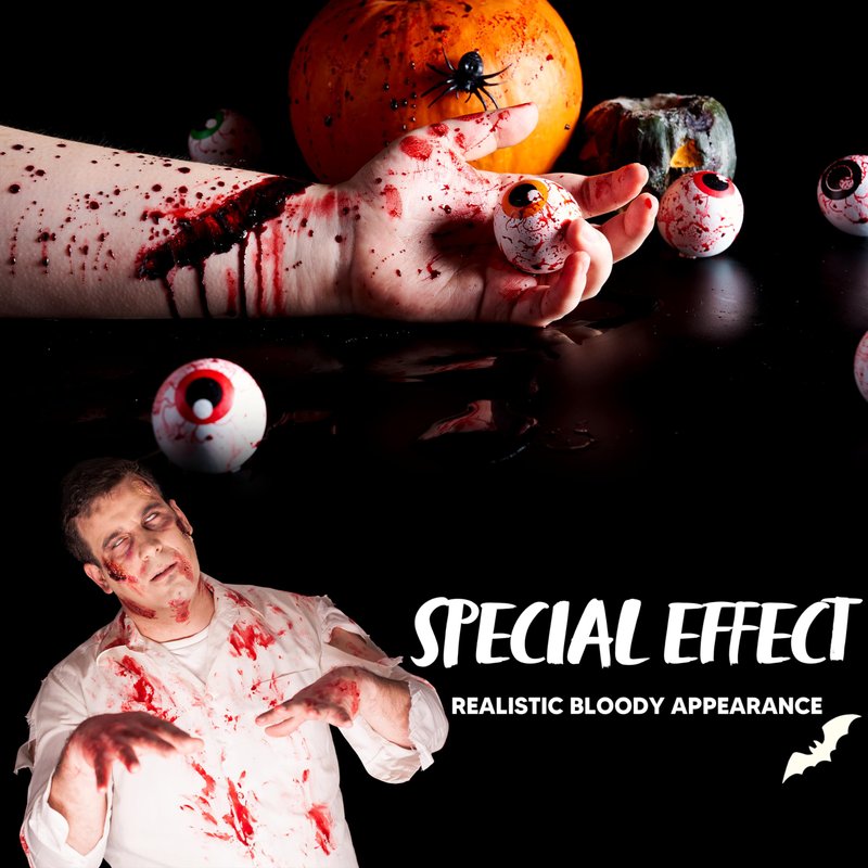 - Realistic Appearance. Our Vampire Blood offers a realistic appearance that enhances the authenticity of your Halloween makeup. The blood replicates the texture, color, and consistency of real blood, adding a gruesome touch to your cosplay or special effects.