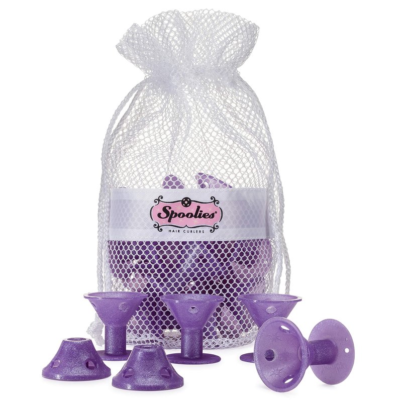 Spoolies Original Hair Curlers, Heatless Silicone Rollers with Mesh Bag Gift for Natural Hair, Hair Extension plus Wigs, Made in USA, 15 Jumbo Size (Purple Galaxy)