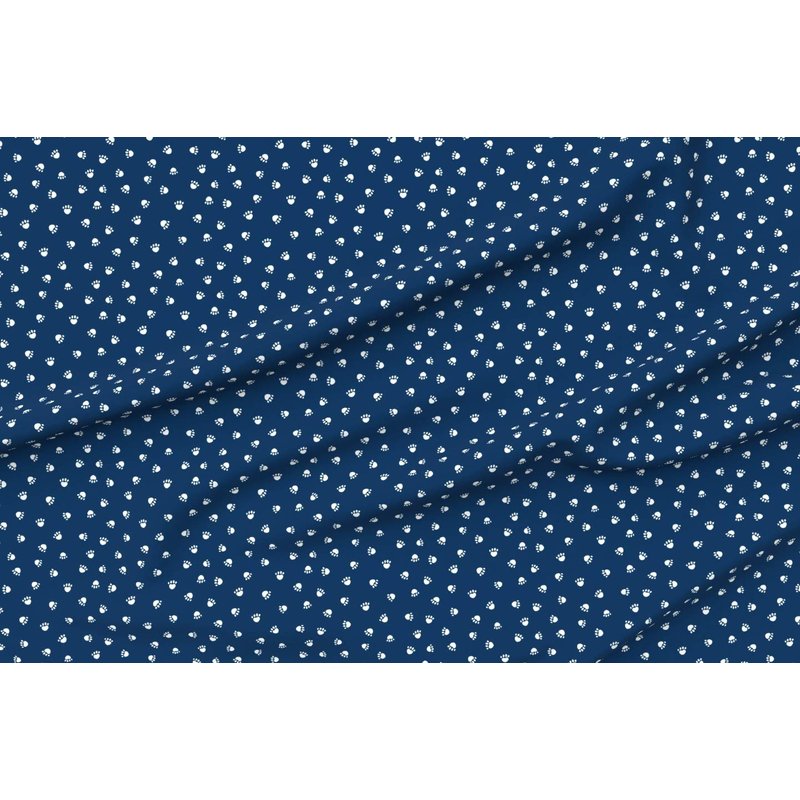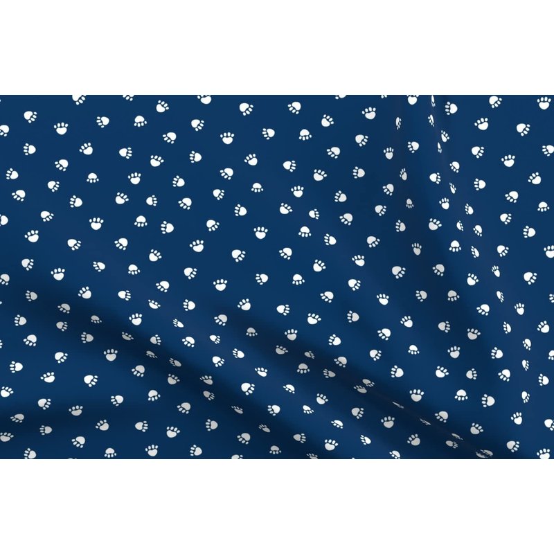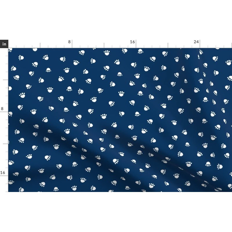 Spoonflower Fabric - Navy Blue Paw Print Pet Dogs Cat Paws Pets Printed on Denim Fabric Fat Quarter - Bottomweight Apparel Home Decor Upholstery