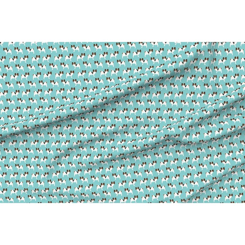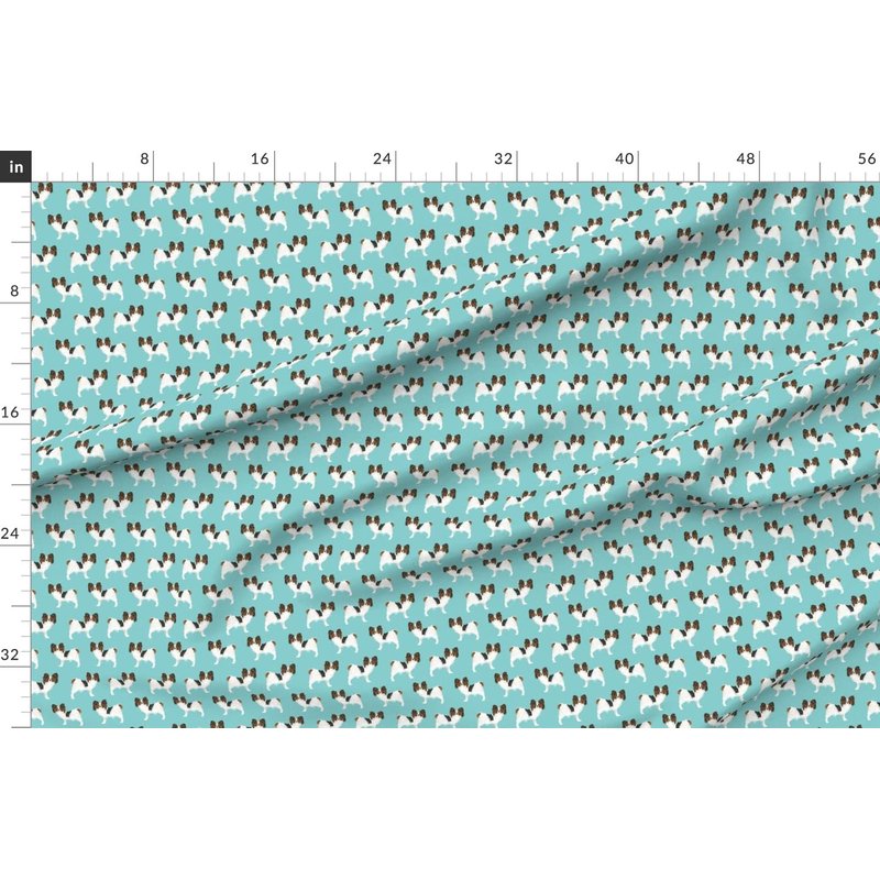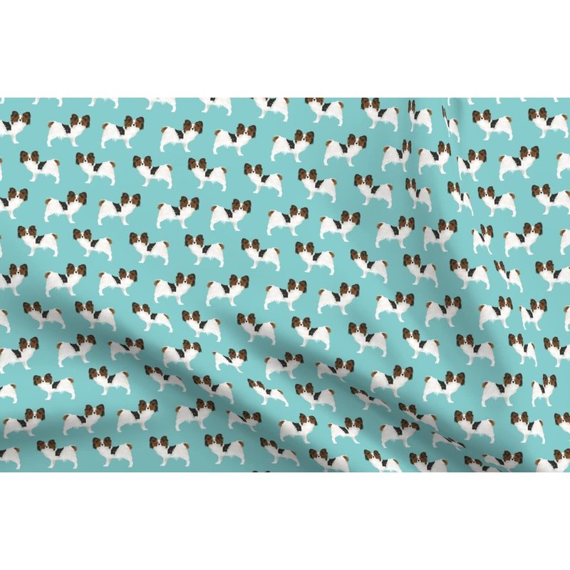 Spoonflower Fabric - Papillon, Dogs, Aqua, Toy Breed, Toy Spaniel, Blue, Puppy, Pet Printed on Denim Fabric Fat Quarter - Bottomweight Apparel Home Decor Upholstery