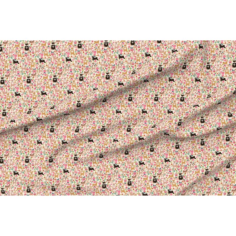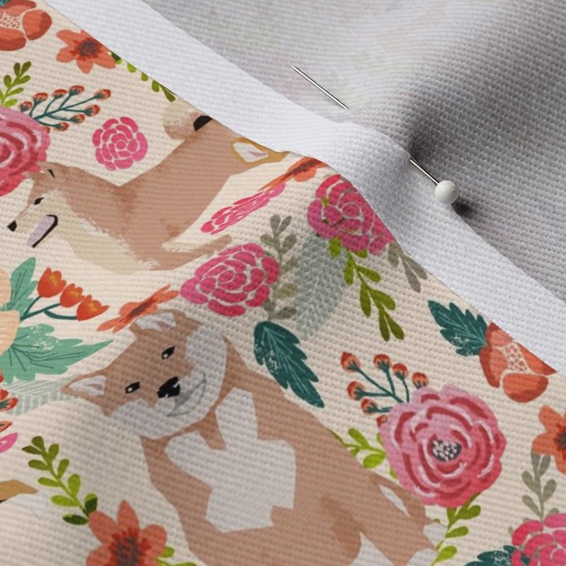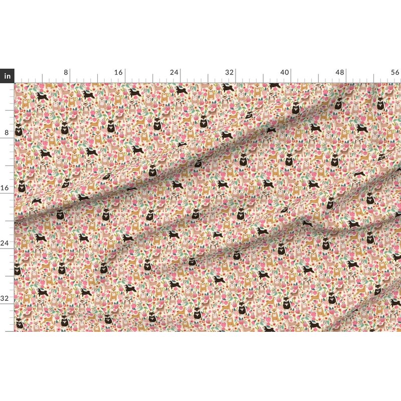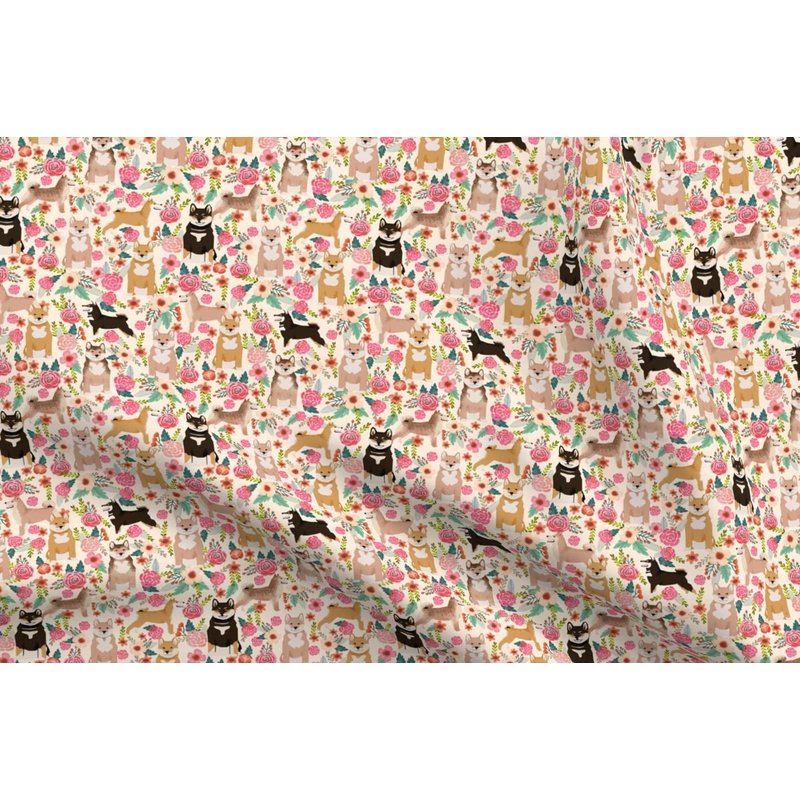 Spoonflower Fabric - Shiba Red Black Tan Dogs Dog Cute Flowers Florals Pets Canine Pet Printed on Denim Fabric Fat Quarter - Bottomweight Apparel Home Decor Upholstery