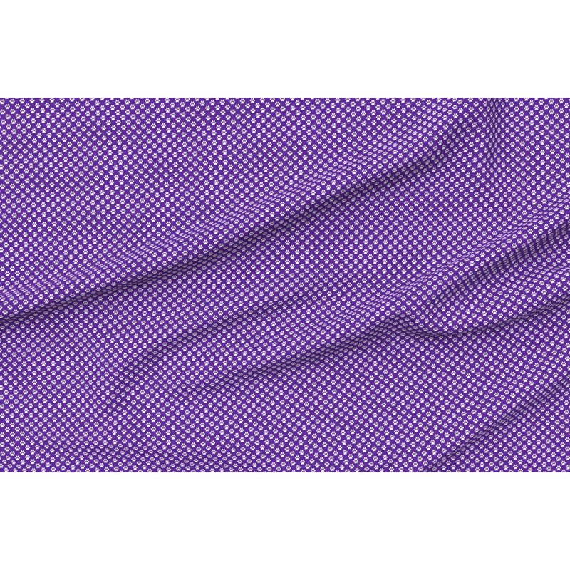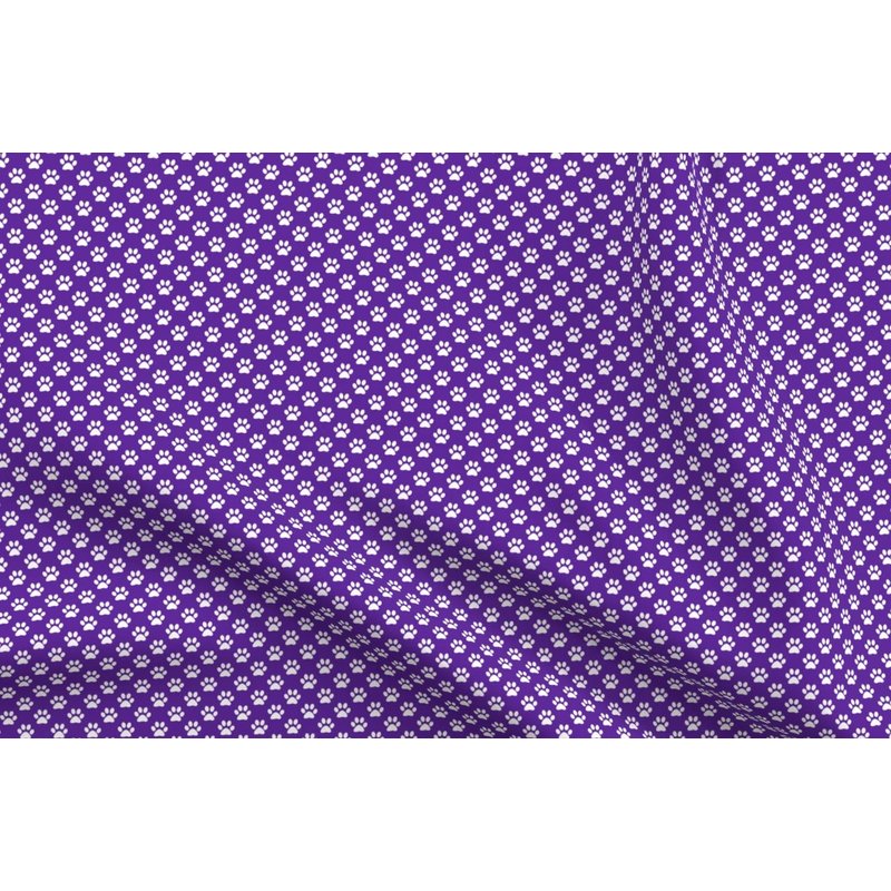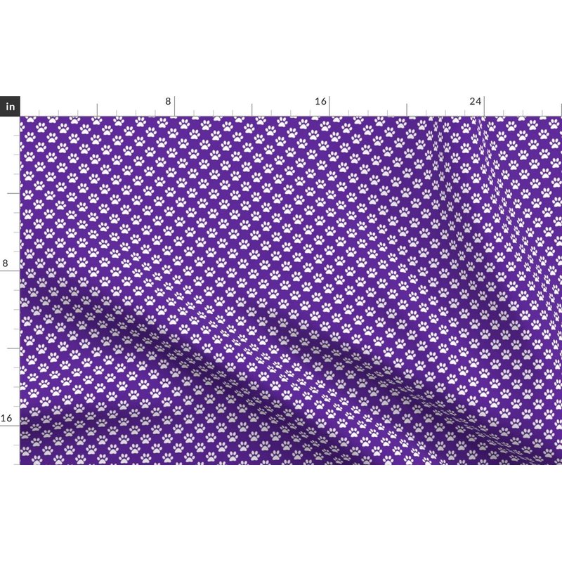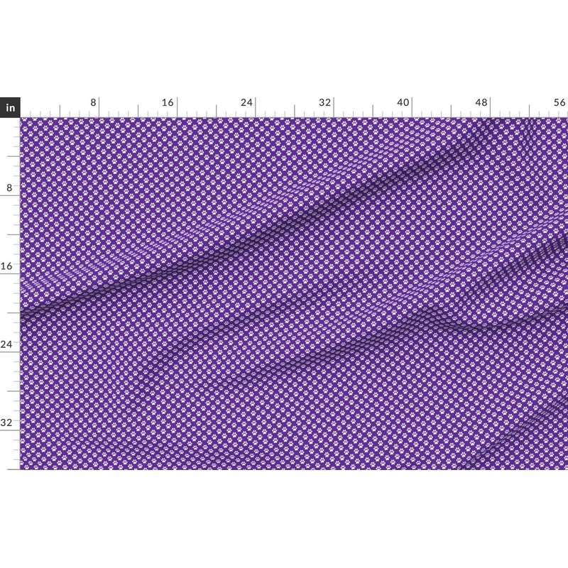 Spoonflower Fabric - White Paw Prints Purple Animal Cat Dogs Mini Small Tiny Micro Pet Printed on Denim Fabric Fat Quarter - Bottomweight Apparel Home Decor Upholstery