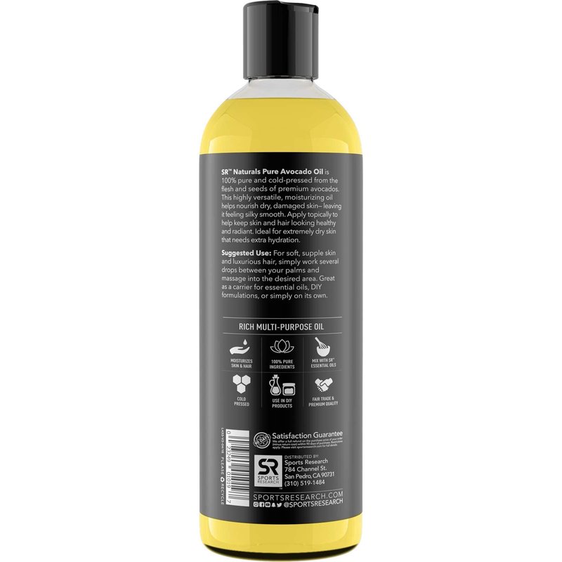 - SR Avocado Oil is the most authentic it can be, with no added fragrances, carriers, or solvents. This is to ensure that the therapeutic benefits are kept intact.