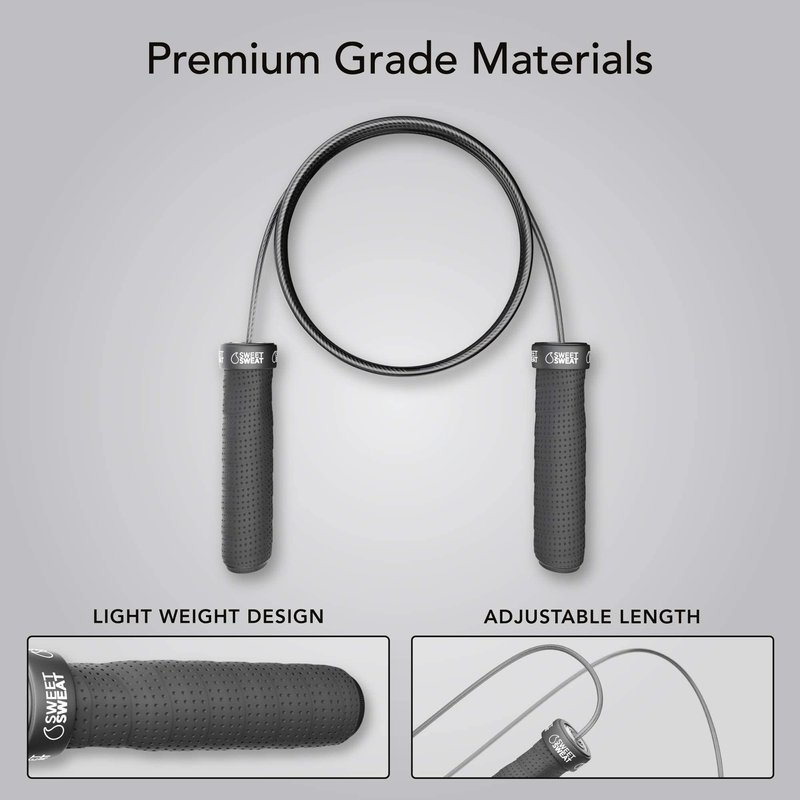 - Fully Adjustable: When you’re after speed, you need a jumping rope that fits you to a T. The Sweet Sweat Speed Rope comes with 2 adjustable, 10ft polymer-coated speed cables; so you can get the exact length you need for the gains you want!