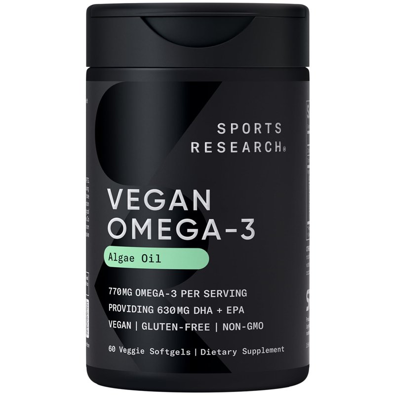 Sports Research Vegan Omega-3 Fish Oil Alternative from Algae Oil - Highest Levels of Vegan DHA & EPA Fatty Acids | Non-GMO Verified & Vegan Certified - Fresh Lemon Scent - 60 Veggie Softgels