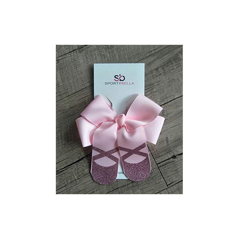 Sportybella Dance Hair Bow with Pink Glitter Ballet Slippers Design, 1 Count, Hair Accessory for Dance Recitals, Dancers and Dance Enthusiasts, Grosgrain Ribbon