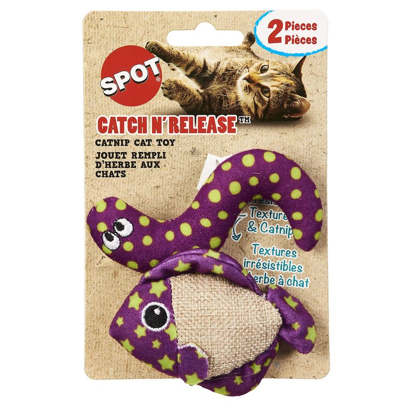 - 2 pack fish and worm catnip toys