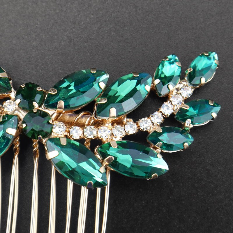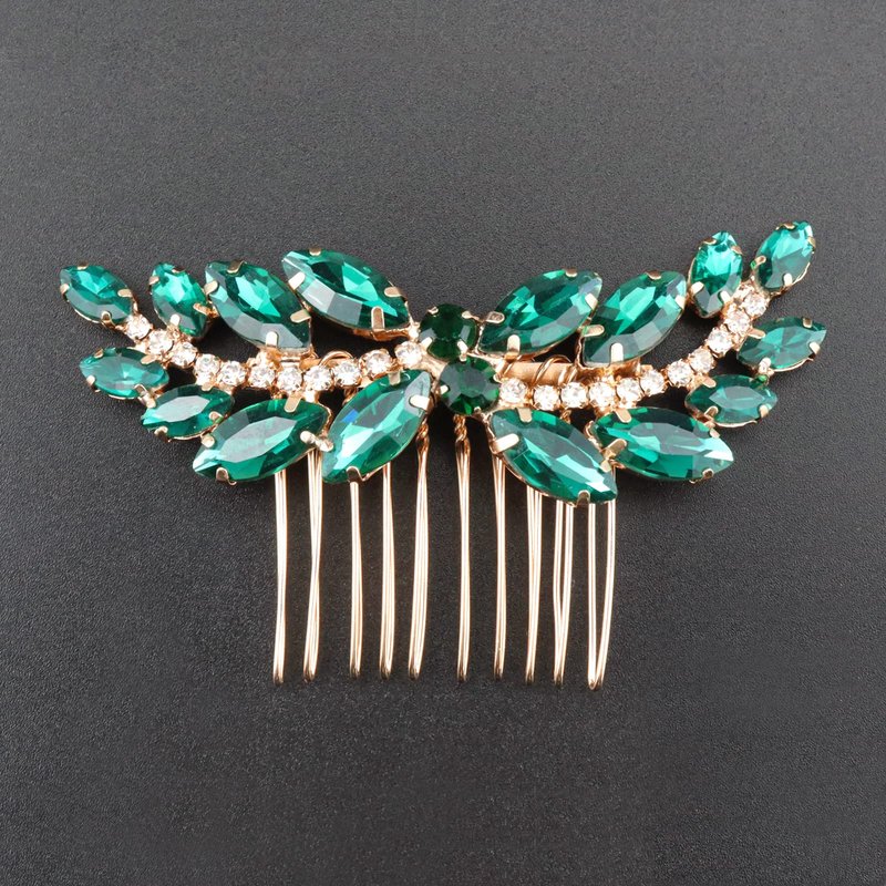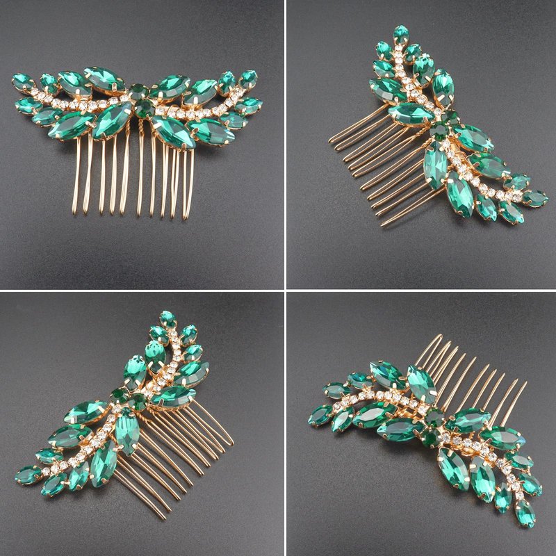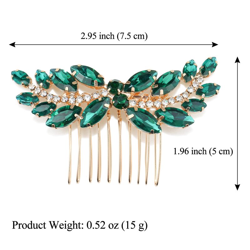 Sppry Rhinestone Hair Comb - Sparkly Hair Accessory for Bridal Women in Wedding Party(Green-Gold)