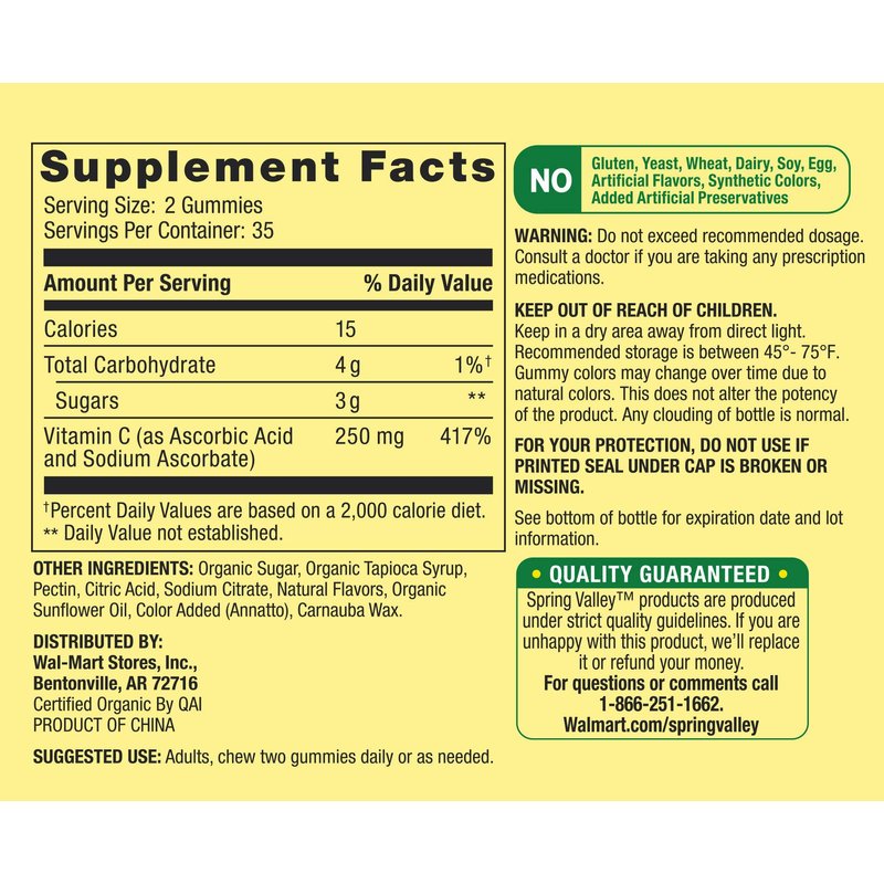 Spring Valley Vitamin C 250 MG Vegetarian Gummies 70 Count Immune Support Health