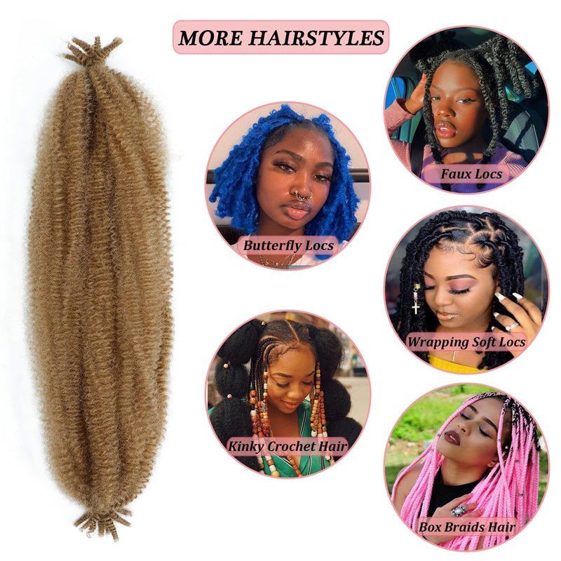 Springy Afro Twist Hair 24 inch Marley Hair for Faux Locs Kinky Marley Twist Braiding Hair Blonde Cuban Afro Spring Twist Crochet Hair for Women Soft Locs Marley Braid Hair Extensions by SIXERSI