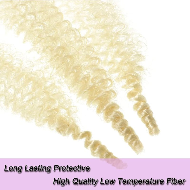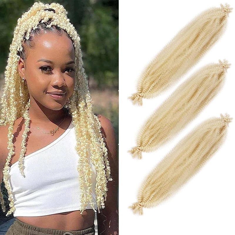 Springy Afro Twist Hair 3Pcs Pre-Separated Kinky Marley Twist Braiding Hair 24IN Springy Twist for Distressed Faux Locs Synthetic Hair Extensions Cuban Twist Hair(613#-Blonde)