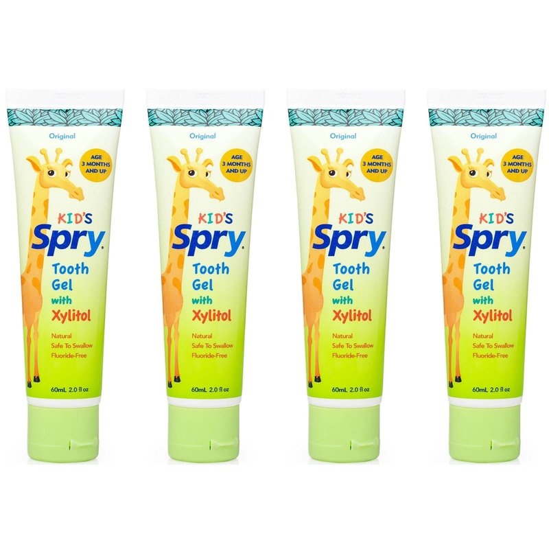 Spry Xylitol Baby Toothpaste, Natural Toddler Toothpaste, Fluoride Free Toothpaste for Kids, Xylitol Toothpaste for Kids Age 3 Months and Up, Tooth Gel Original 2 Fl Oz (Pack of 4)