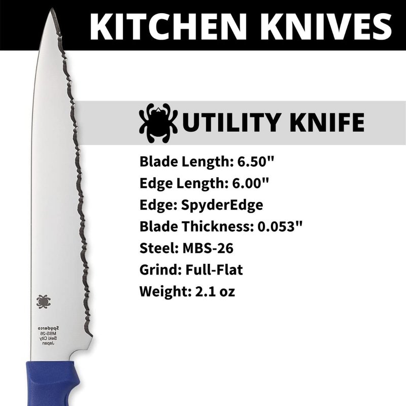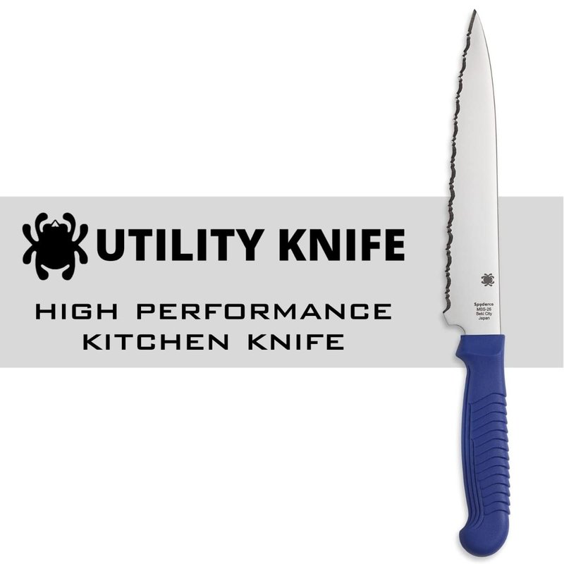 Spyderco Lightweight Kitchen Utility Knife with 6.5" MBS-26 Stainless Steel Blade and Blue Polypropylene Plastic Handle - SpyderEdge - K04SBL